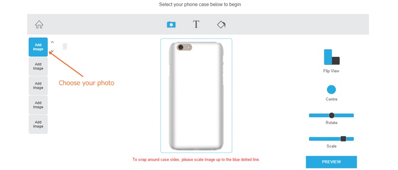 Step 3 : Design your case. You may upload photos from your camera, phone or from your social media website.